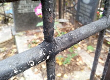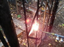 На могиле в первую очередь мы занялись оградой. Обожгли старую краску. В этот раз обжиг занял больше времени. Пришлось жечь ее в два захода.