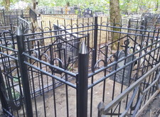 Далее демонтируем все с территории могилы и выпрямляем ограду. Для этого потребовалось полностью откопать две задние ножки, выпрямить ограду и заново залить цементом.