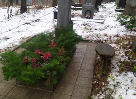Уборка могилы и возложение цветов зимой